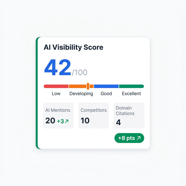 A single score that tells you how visible your business is across ChatGPT, Gemini, and Claude. Track changes over time, compare against competitors, and know exactly where you stand in AI recommendations.